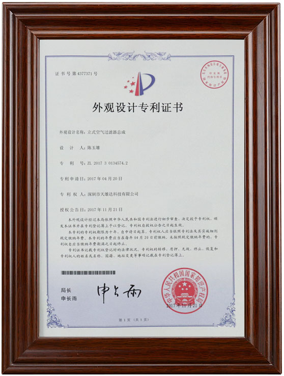 外觀設(shè)計專利證書
